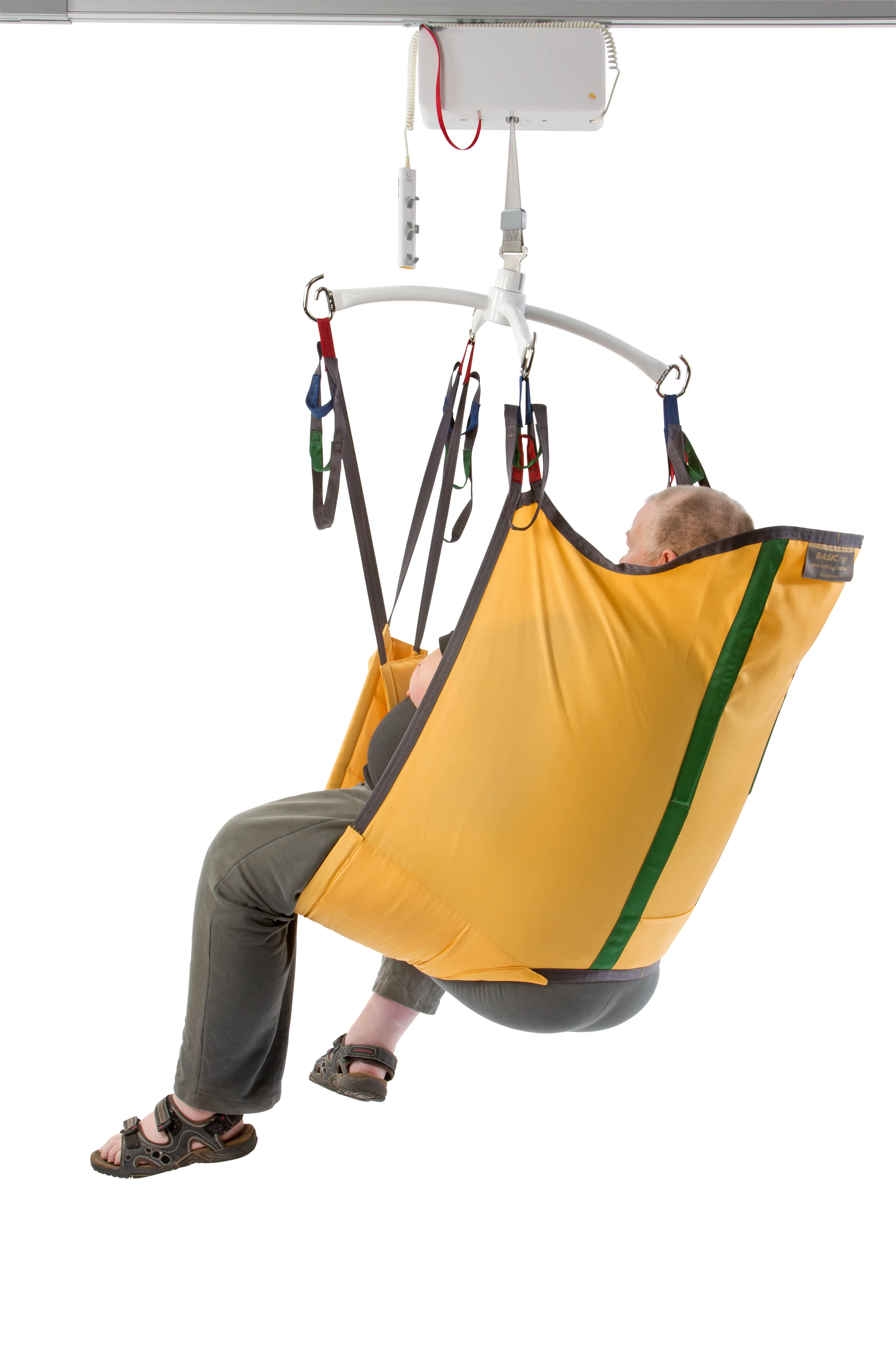The sling is ideal for lifting, moving and positioning users who have reduced control in their head, upper and lower body. It can be used from a seated or lying position, for example from the floor, bed or wheelchair. The Basic High is designed to be a general lifting sling to achieve most lifting situations.
