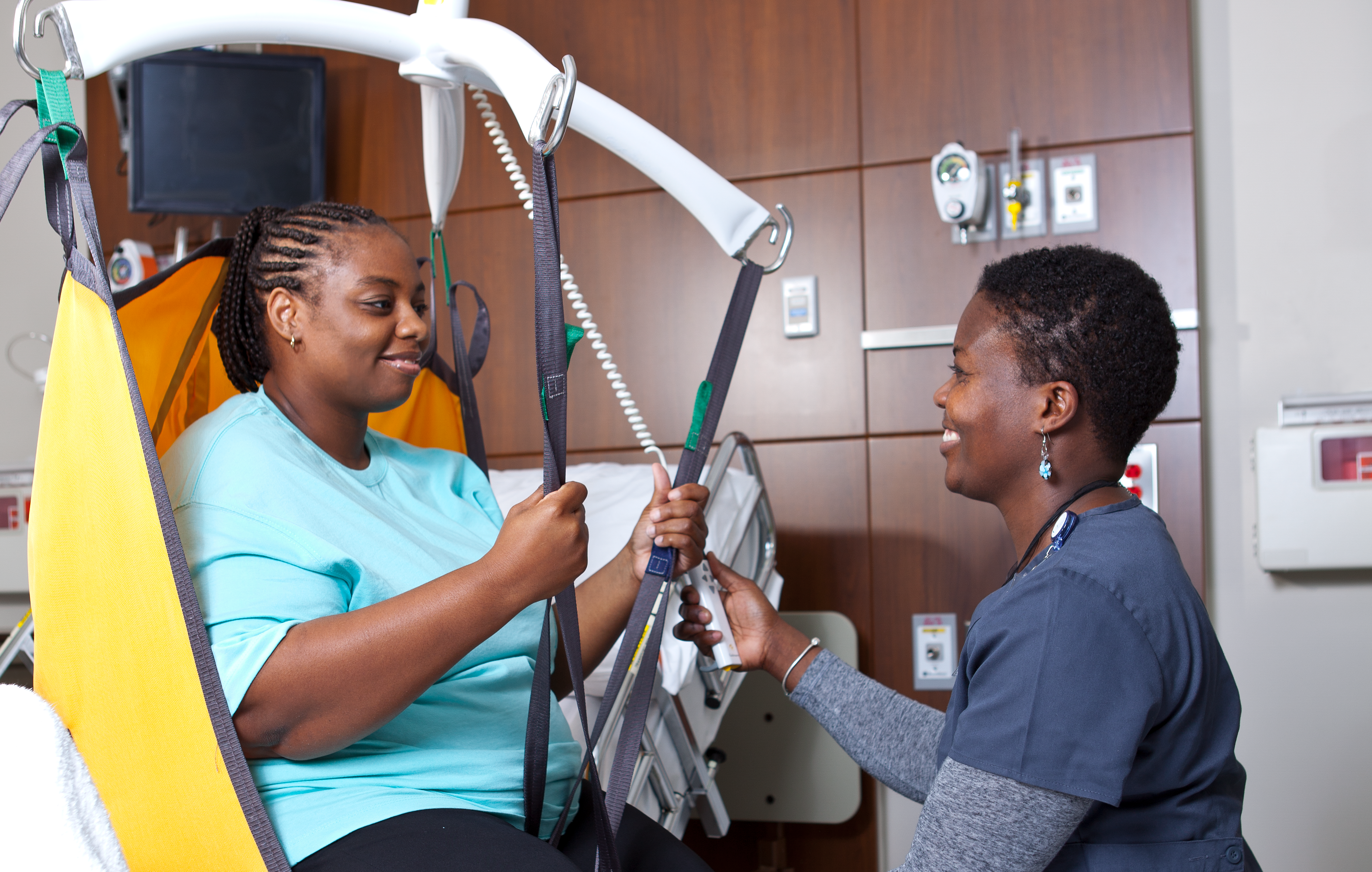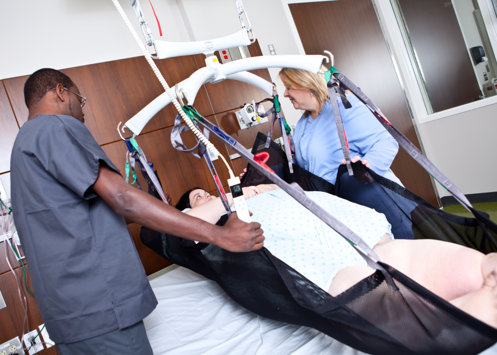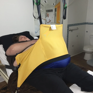 Using a ceiling hoist system and the Guldmann range of slings for bariatric people facilitates the performance of lifting, repositioning and hygiene procedures in a manner that is dignified and gentle for both patient and care staff.
